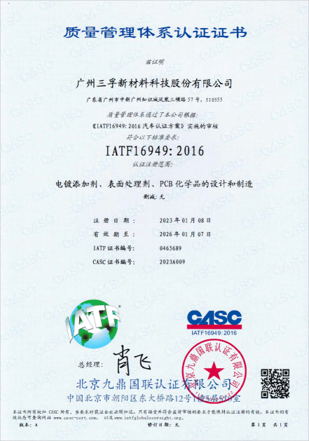| 3 | 一种用于水平沉铜的离子钯活化液及其制备方法 | 202010783640X | 发明专利 | 2021.3.23 | 2020.08.06-2040.08.05 |